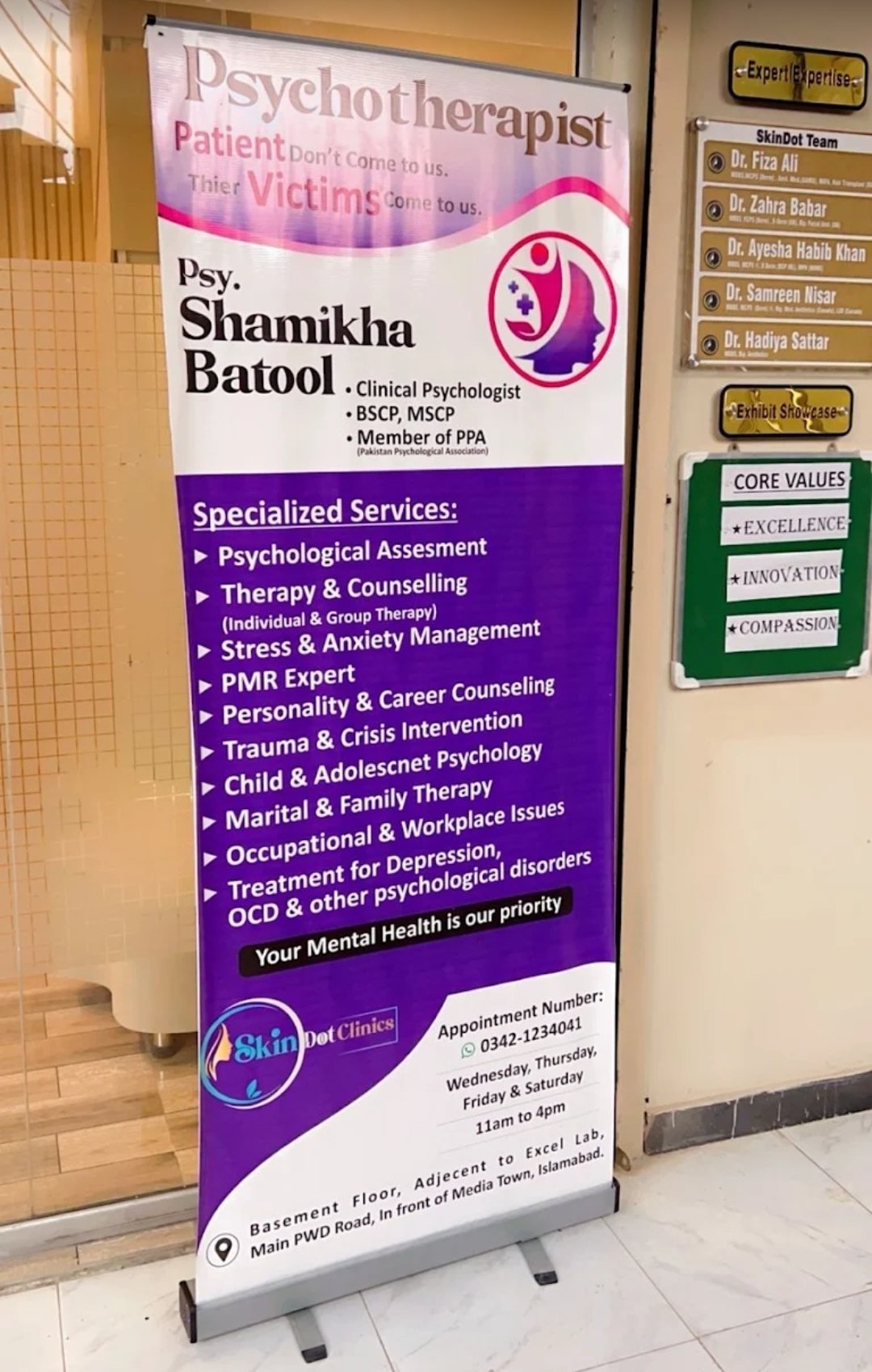 PeaceMind Islamabad provides a compassionate space for personal growth and healing. Their dedicated team of psychologists and psychotherapists offers professional support tailored to your unique journey. Located within the SkinDot Clinics in Islamabad, they serve the wider regions of Islamabad and Rawalpindi. PeaceMind is committed to helping you navigate life's challenges with clarity and resilience, fostering a sense of peace and understanding within your mind.